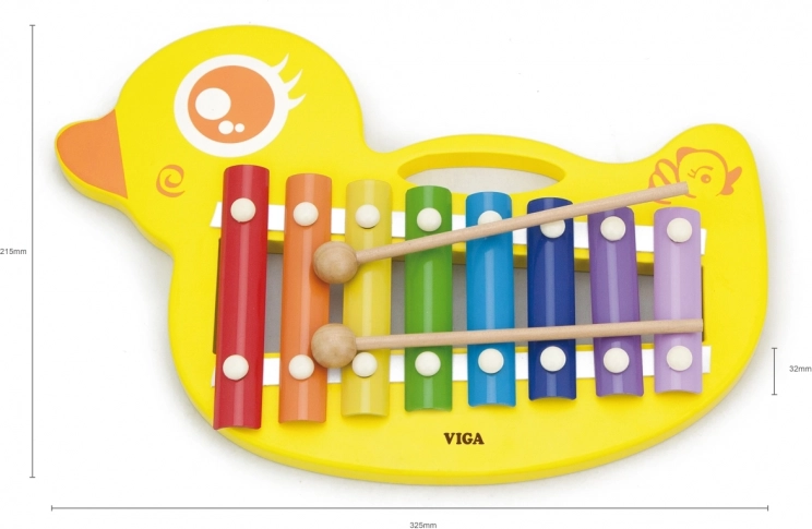 Ovaj simpatični dječji ksilofon u obliku pačića oduševljava živim bojama i ergonomskim oblikom s ručkom za jednostavno prenošenje. Šarene metalne tipke stvaraju jasne tonove koji motiviraju djecu na otkrivanje ritma i prvih melodija.