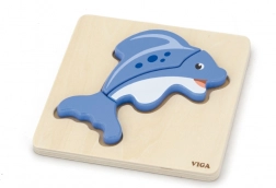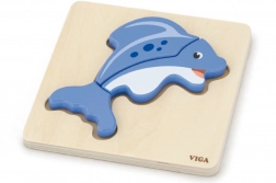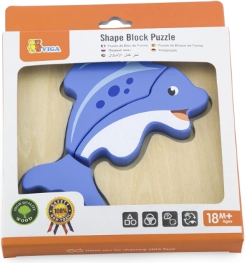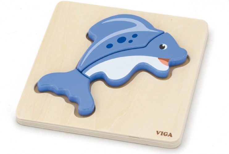 Ova drvena puzzle umetaljka s plavim dupinom izvrstan je izbor za prve slagalice. Zahvaljujući čvrstoj drvenoj podlozi i dobro pristajućim dijelovima, djeca lako vježbaju koordinaciju oko–ruka i strpljenje. Igračka je dizajnirana s naglaskom na sigurnost i dugotrajnost.