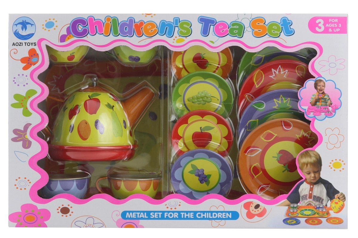 Set za čaj sadrži: 1x čajnik cca 11 cm, 4x šalice s tanjurićem, 4x tanjurić i 1x pladanj. Dimenzije pakiranja cca 32 x 20 x 9,5 cm. Dob 3+