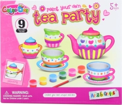 Stvorite jedinstven dječji čajni set vlastitim bojama! Set sadrži sve što vam treba za stvaranje – keramičku čajnicu, šalice, vrč, posudicu za šećer te boje s kistom. Idealno za razvoj kreativnosti i fine motorike. Jednostavno za korištenje, kompletan set, prikladno od 3 godine.