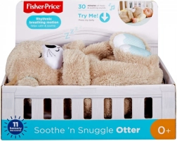 Plišana vidra Soothe 'n Snuggle osmišljena je za miran san beba. Ritmično podizanje i spuštanje trbuščića oponaša prirodno disanje, što djecu intuitivno umiruje. Uz to, vidra nudi do 30 minuta melodija, zvuk otkucaja srca, bijeli šum i nježno hrkanje te se može prilagoditi trenutnom raspoloženju bebe.