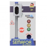 Zabavan i poučan semafor sa znakovima dimenzija 24 × 14 cm pomaže djeci kroz igru upoznati pravila cestovnog prometa. Zahvaljujući svjetlosnim efektima igra je realističnija, a proizvod se može koristiti samostalno ili kao dodatak automobilima iz serije Citty collection. Pogodno za djecu od 3 godine, pakirano u open box, AA baterije su uključene u pakiranje.