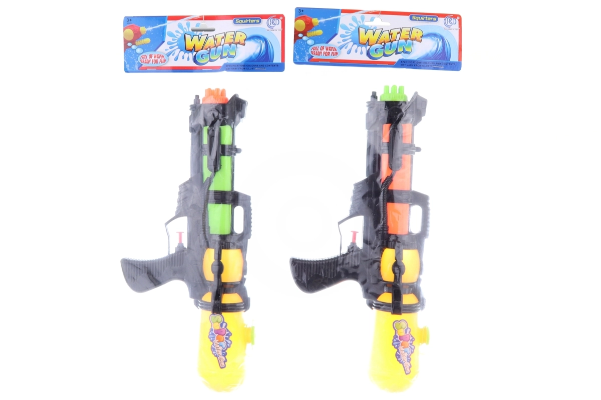 Uživajte u ljetnoj zabavi s ovim pištoljem na vodu sa spremnikom duljine 37 cm. Jednostavan za uporabu, lagan i idealan za djecu od 3 godine za vrt, plažu i igralište.