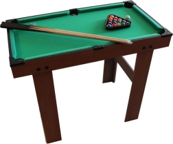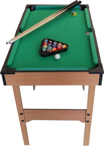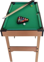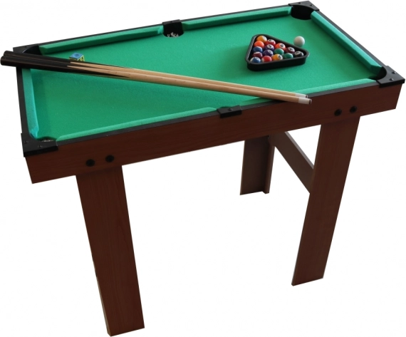 Kompaktni dječji biljar u kvalitetnoj drvenoj izvedbi donosi sjajnu zabavu za male i velike igrače. U pakiranju se nalaze 2 štapa, 16 bilijarskih kugli i kompletan pribor. Zahvaljujući dimenzijama idealan je za dječju sobu i prvo upoznavanje s pravilima igre.