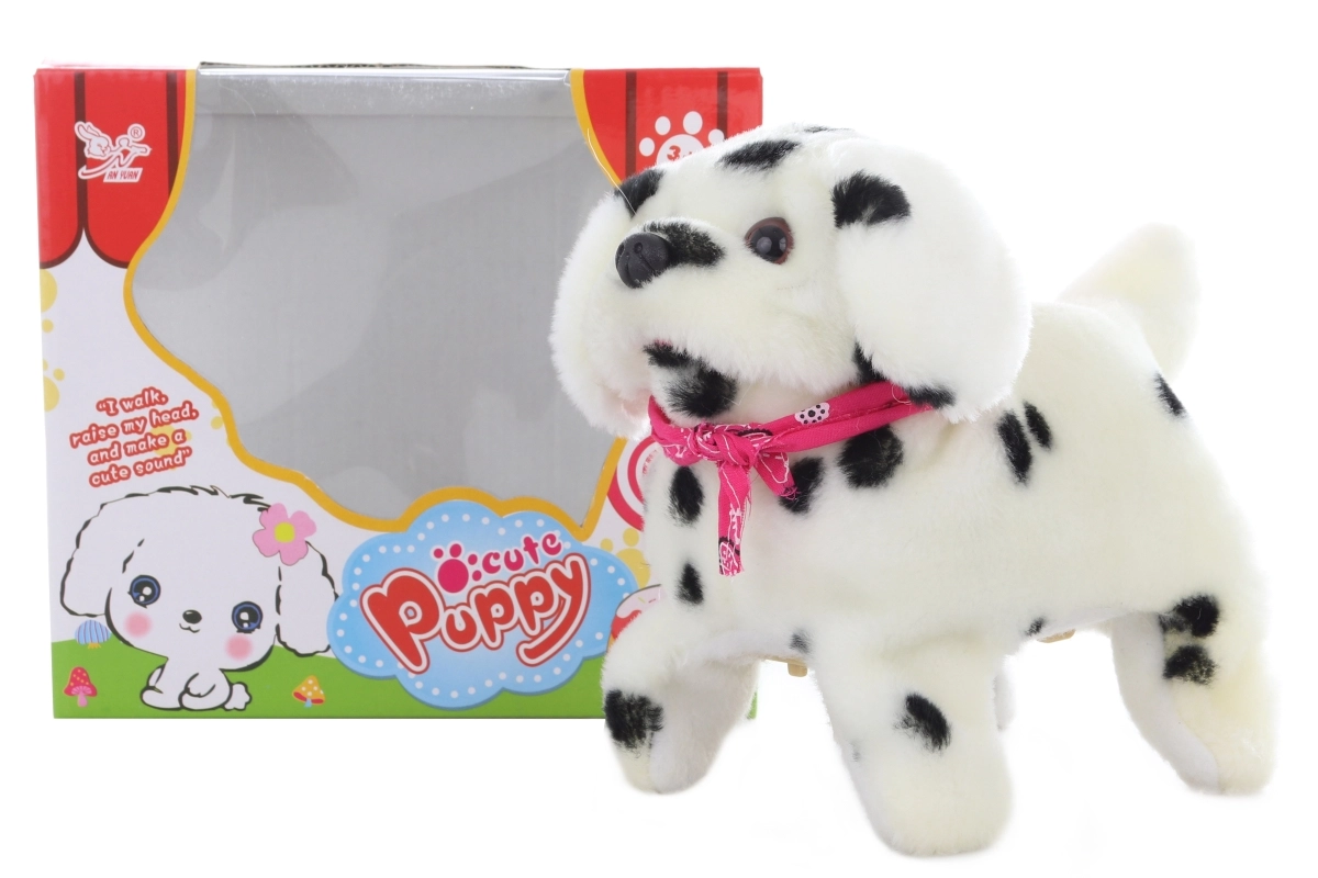 Živahan i razigran dalmatiner veličine približno 18 × 16 × 10 cm odličan je poklon za male ljubitelje životinja. Nakon uključivanja psić se razigra, veselim lajanjem privlači pozornost i iznenađuje efektnim saltima koja garantiraju puno smijeha i radosti.