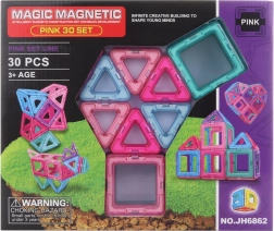 Uživajte u satima kreativne zabave s ovom magnetičkom građevnom igračkom. Set sadrži 30 dijelova koji se lako spajaju zahvaljujući magnetskim rubovima. Šareni dijelovi u ružičastoj, plavoj i tirkiznoj boji su prozirni i impresivno izgledaju pri sastavljanju raznih 3D objekata.