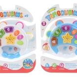 Zabavna plastična tamburina za najmlađu djecu od 18 mjeseci. Pritiskom na tipke svijetli i emitira vesele zvukove koji potiču razvoj osjetila i motorike. U pakiranju se nalaze 2 AAA baterije, pa je spremna za igru odmah nakon otvaranja.