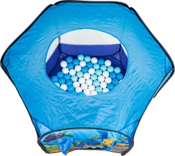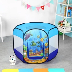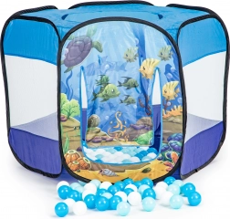 Lagan i stabilan pop-up šator za djecu s motivom podmorskog svijeta pretvara svaku sobu ili vrt u zabavno igralište. U kompletu je 100 šarenih loptica, prozračne mrežaste stranice, rolo ulaz i prozorić na krovu. Samo-razvijajuća konstrukcija omogućuje brzu montažu i jednostavno prenošenje.