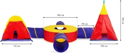 Djeca će obožavati provlačenje kroz 4 tunela, skrivač u igluu i tajnu bazu u tipiju s prozorčićem i zatvarajućim ulazom. Kružni centar s gornjom ventilacijom povezuje sve dijelove i potiče timsku igru. Materijal od izdržljivog poliestera dobro podnosi svakodnevnu upotrebu u domu, na terasi i u vrtu.