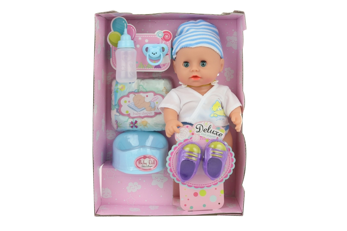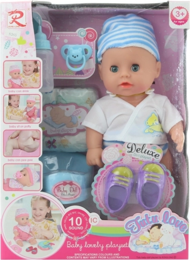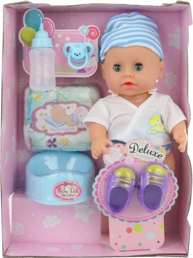 Preslatka bebica visine 30 cm razveselit će svakog malog skrbnika. Nakon umetanja baterija ispušta realistične zvukove i može piškiti. U pakiranju se nalaze cipelice, podbradak, bočica, tanjurić i drugi dodaci za igru mame ili tate. Idealno za djecu od 3 godine.
