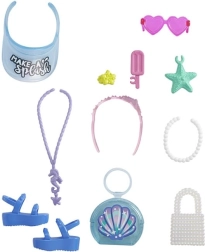 Otkrijte inovativne setove Barbie® modnih dodataka koji donose beskrajne mogućnosti za stvaranje kreativnih scenarija s vašom lutkom. Svaki set sadrži 11 jedinstvenih komada, podijeljenih u različite tematske serije: rolanje, ocean, divljina i djevojačka večer. Uz ove dodatke, koji uključuju modne predmete poput šešira i novčanika, kao i zabavne igračke poput rola i morske zvijezde, igra postaje još zanimljivija.