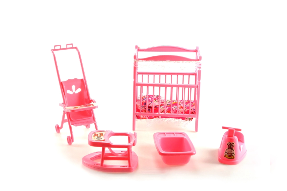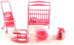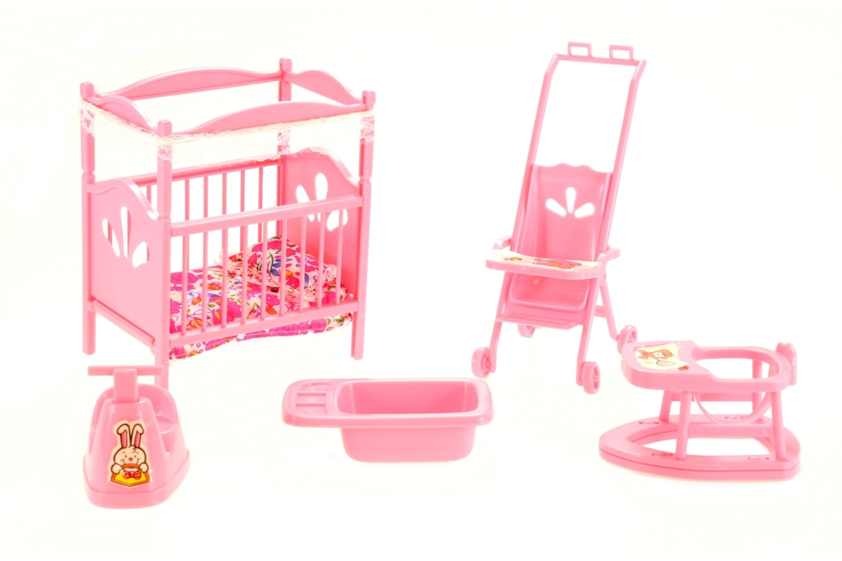 Kompletan set za dječju sobicu za lutke GLORIE razveselit će svakog malog skrbnika. U setu ćete pronaći krevetić s pokrivačem i jastučićem, kolica, hodalicu, noću posudu i kadicu – sve od izdržljive plastike i u veličinama idealnima za igru. Odlično za razvoj mašte i igre uloga. Pogodno od 3 godine.