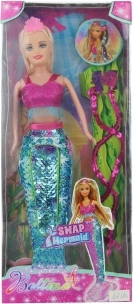 Otkrijte podvodni svijet s gracioznom morskom sirenom koja oduševljava svojim sjajnim repom od šljokica. Lutka visine 29 cm odlična je za svakodnevnu igru, putovanja i kao poklon za male ljubitelje bajki.