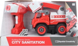 Zabavna i poučna igračka za male tehničare: vatrogasno vozilo za sastavljanje vijcima koje djeca sklapaju pomoću priloženog odvijača ili dječje bušilice. Nakon umetanja motorića iz bušilice u vozilo moguće je vozilom upravljati na daljinu i voziti naprijed i natrag. Vozilo reproducira zvučne efekte, prikladno je od 3 godine i napaja se s 4× AA (nisu uključene) i 3× AG13 (uključene).