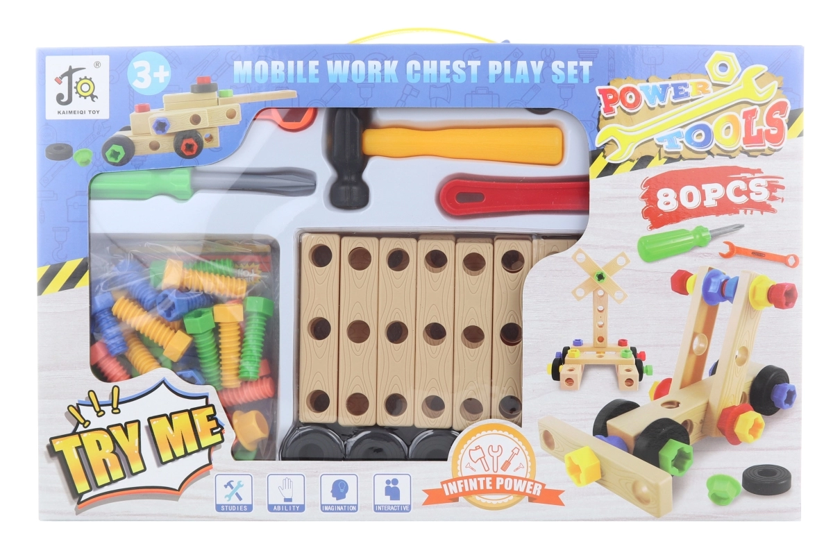 Otkrijte zabavnu i edukativnu igračku za male majstore: vijčanu konstrukcijsku set-igračku s ukupno 80 dijelova i dječjim alatom. Podupire finu motoriku, kreativnost i tehničko razmišljanje kod djece od 3 godine. U kompletu su omiljeni alati kao što su čekić, odvijač i ključ, s kojima djeca mogu sigurno isprobati prve konstruktorske projekte.
