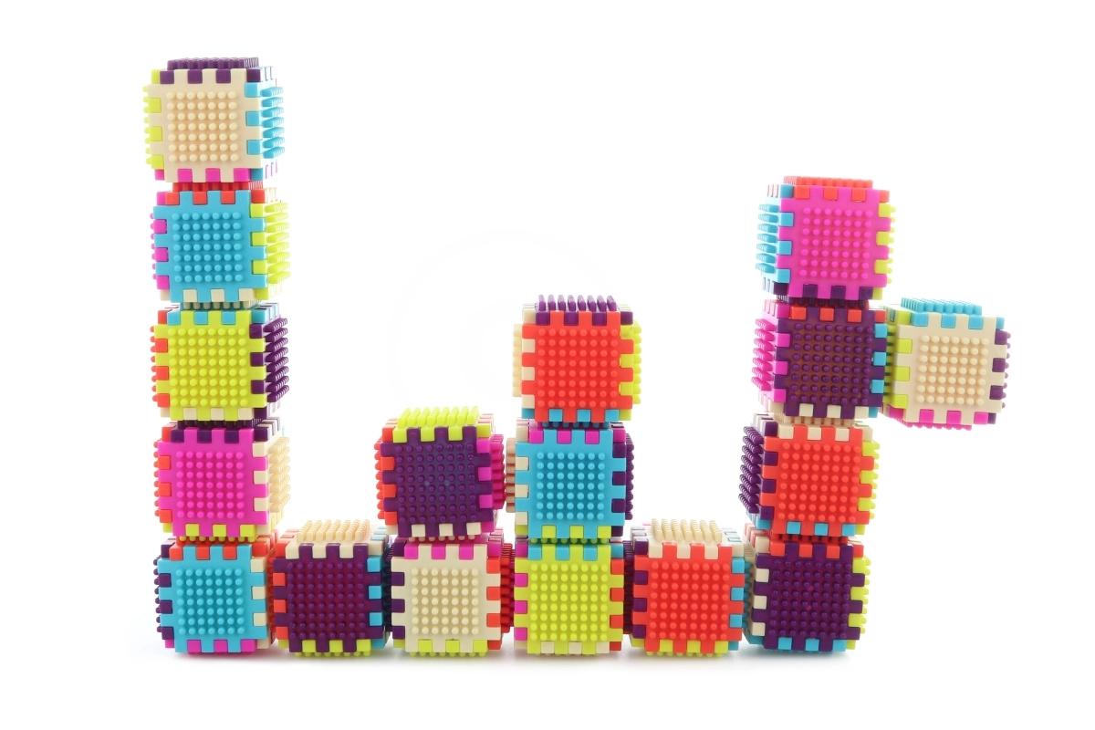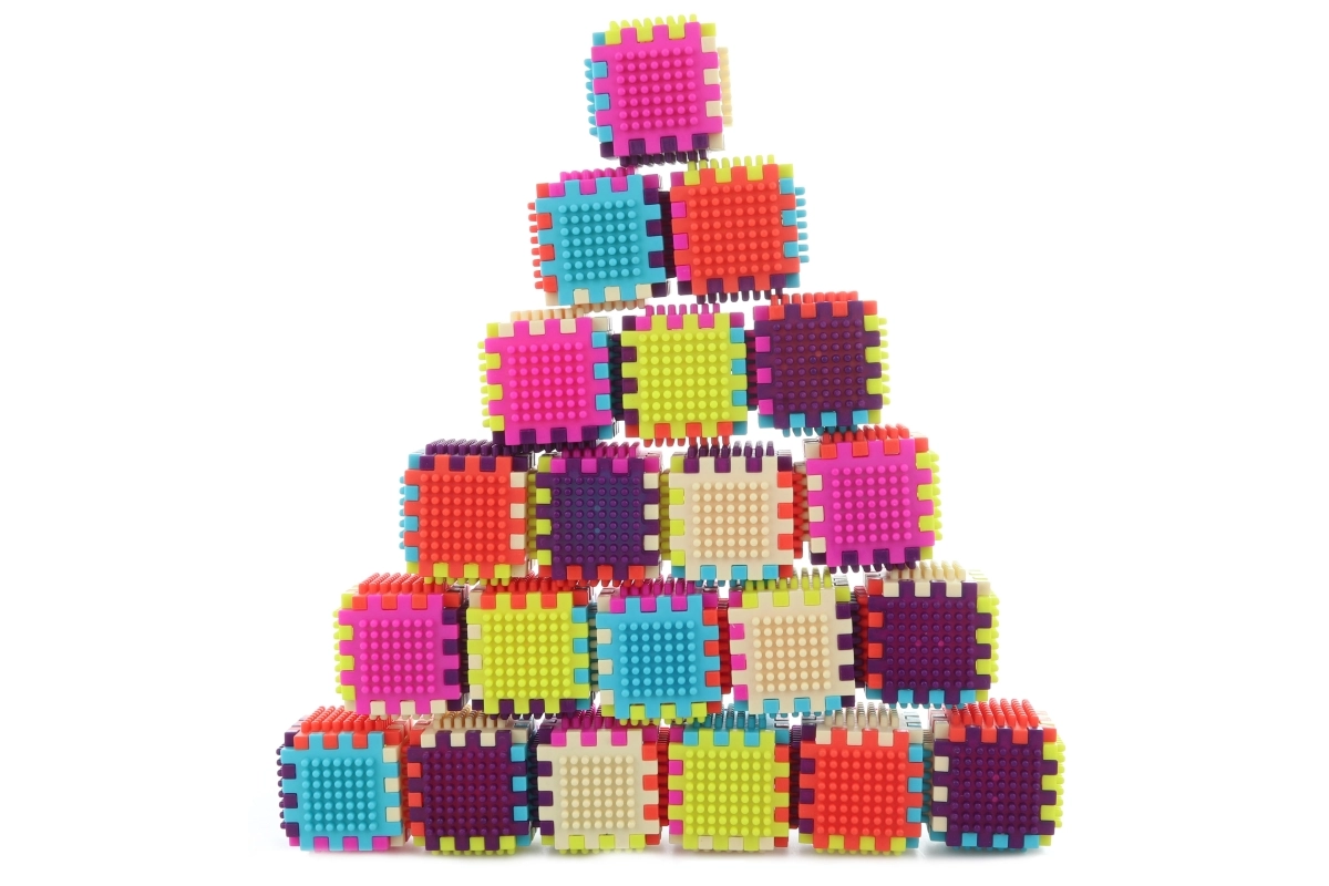 Vesele boje i lako spojive kocke nadahnjuju djecu na izradu tornjeva, kućica i maštovitih objekata.