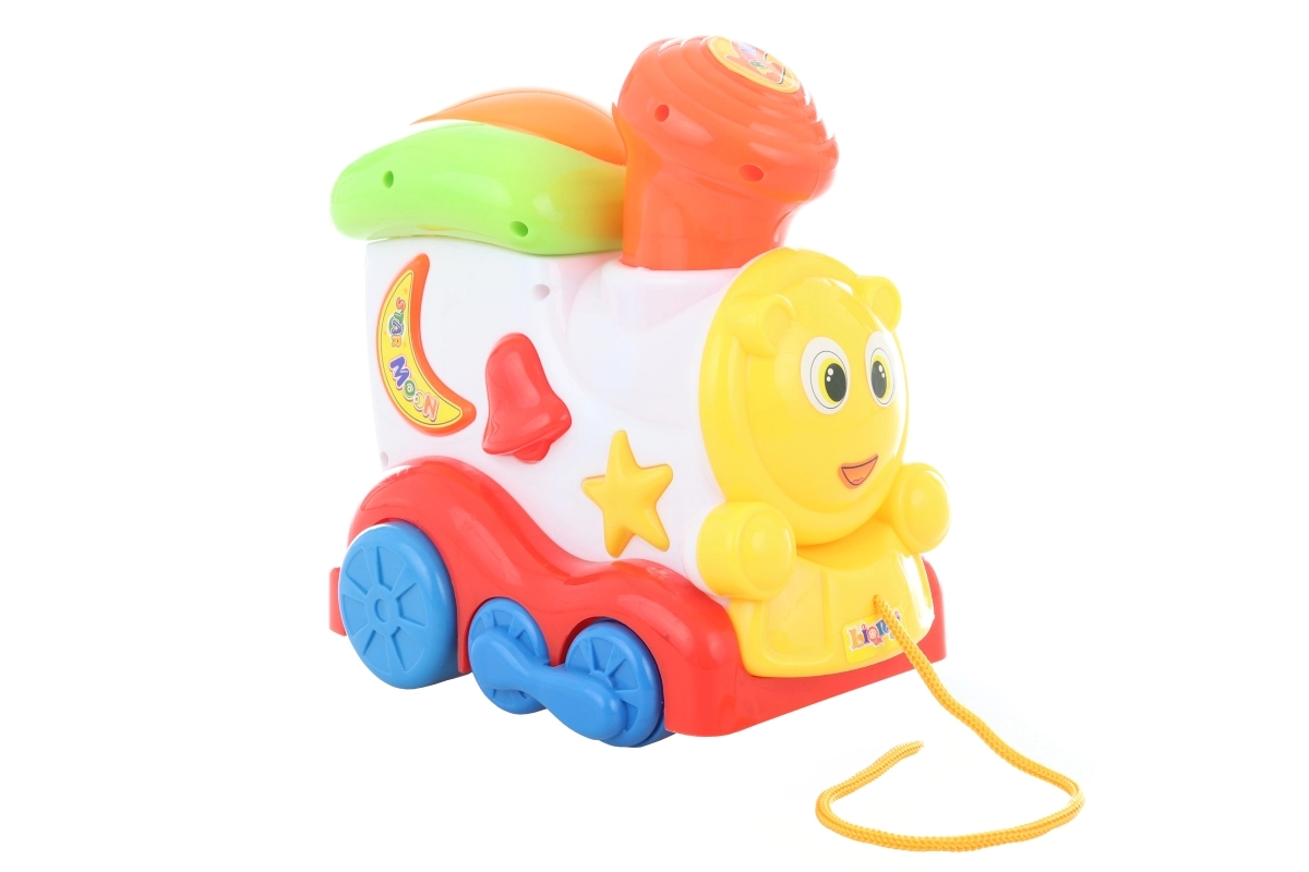 Ova šarena zviždeća lokomotiva razveselit će svako znatiželjno dijete. Pri povlačenju za sobom i pritiskom na dimnjak ispušta zviždeći zvuk koji potiče osjetilno opažanje i motivira na kretanje. Zahvaljujući kompaktnim dimenzijama njome se lako rukuje te je prikladna za igru kod kuće i na putu.