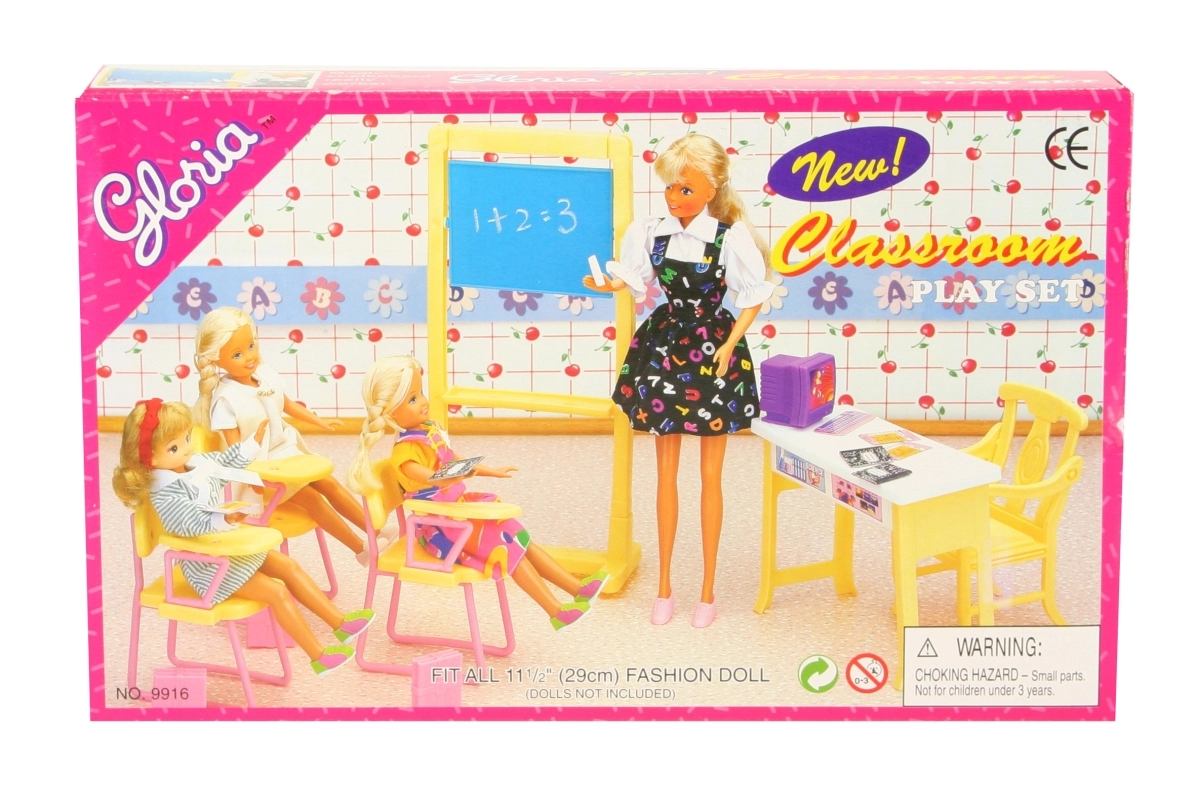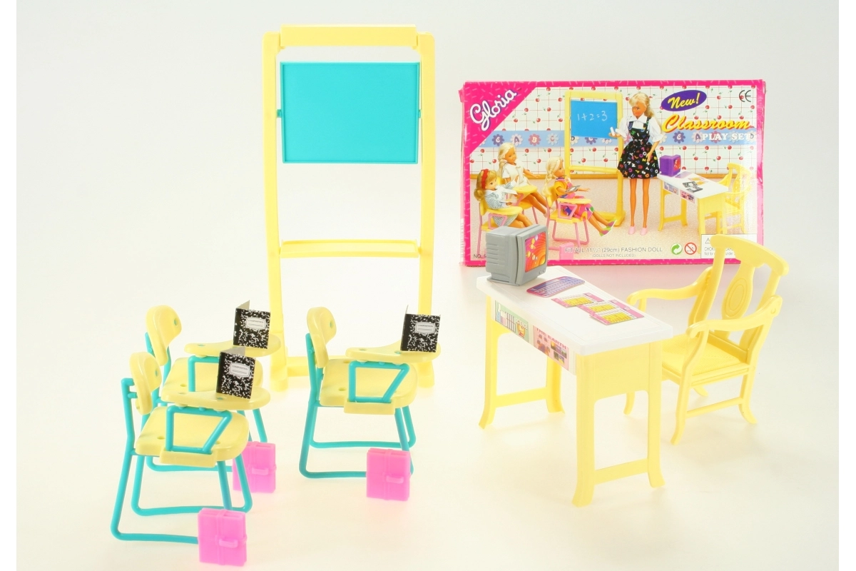 Sa setom Glorie školski razred svaki dječji prostor pretvara se u malu učionicu. Djeca se mogu igrati učitelja i učenika, pisati na ploči, ispravljati testove i pripremati se za školu. Bogata oprema jamči duge sate zabave i razvoj socijalnih vještina.