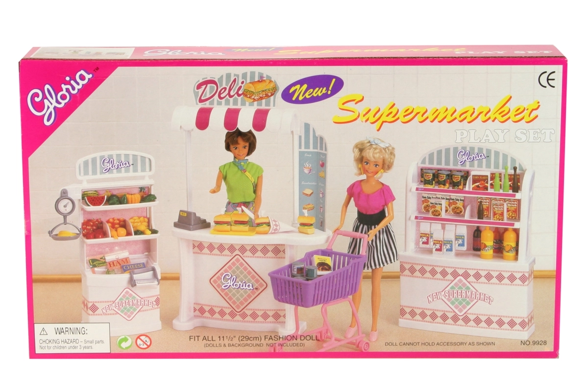 Otkrijte zabavan svijet kupovine s igraćim setom Glorie supermarket, koji nudi šalter za brzo osvježenje s blagajnom, dvije police s namirnicama, košaricu za kupovinu i mnogo realističnih dodataka. Djeca će uživati u slaganju sendviča s odvojivim sastojcima te kreativnoj igri prodavača i kupaca. Pogodno za djecu od 3 godine. Lutke nisu uključene u pakiranje.