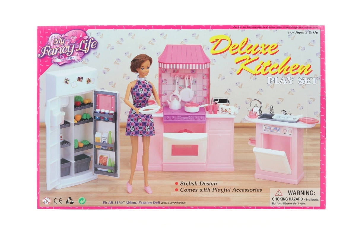 Pružite djeci realističnu igru kućanstva s luksuznim kuhinjskim setom GLORIE, koji nudi kompletnu kuhinjsku liniju s pećnicom, sudoper s perilicom posuđa i hladnjak s namirnicama. Dio seta je također bogata dodatna oprema za posuđe. Lutka nije uključena u pakiranje. Prikladno za djecu od 3 godine.