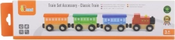 Drveni set Klasični vlak sadrži 4 dijela koji su spojeni magnetima. Ova igračka je dizajnirana od strane renomiranog proizvođača drvenih igračaka, tvrtke Viga Toys. Set se može koristiti kao samostalna igračka, ili kao dodatak drugim željezničkim prugama, konstrukcijama i setovima.