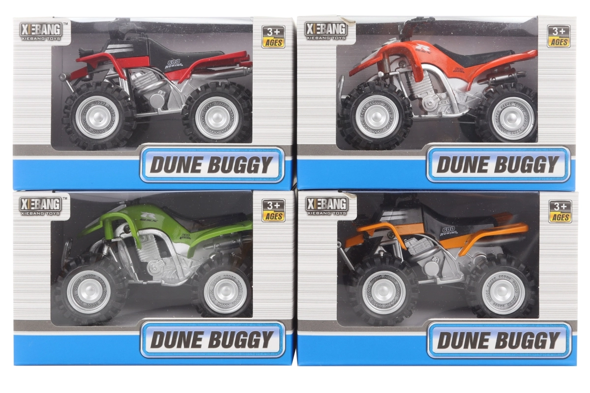 Ovaj model četverocikla idealan je za male ljubitelje terenskih strojeva. Metalni dijelovi povećavaju izdržljivost, plastični dodaci daju detalje i lakoću. Igračka je dizajnirana tako da podnese svakodnevne dječje utrke i maštovite avanture.