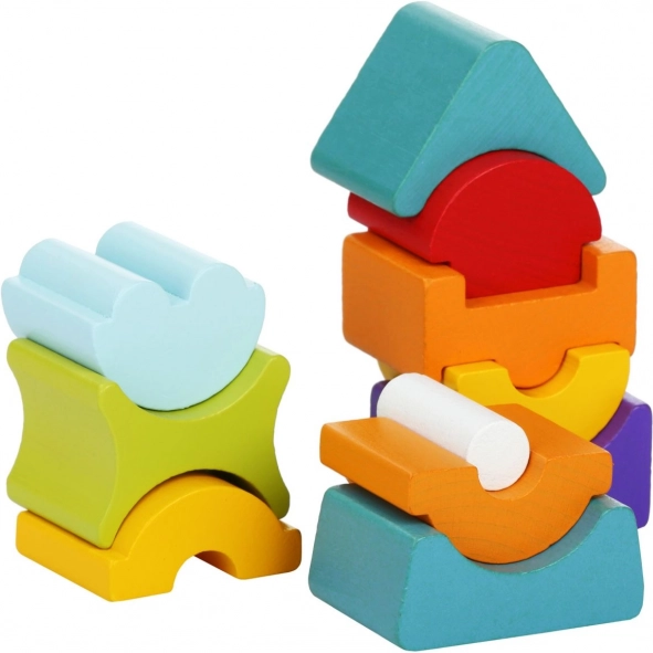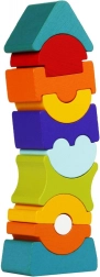 Zaobljeni dijelovi omogućuju slaganje tornja ravno ili s nagibom. Djeca pri svakom pokušaju vježbaju strpljenje, koordinaciju i prostornu maštu.