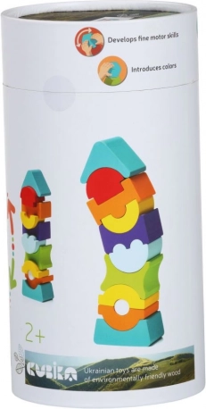 Balansirajući toranj CUBIKA donosi djeci radost otkrivanja i učenja. Jedanaest precizno obrađenih drvenih dijelova u živim bojama međusobno se uravnotežuje, pa se mogu stvarati stabilne i hrabro nagnute konstrukcije. Igra razvija koordinaciju oko–ruka, strpljenje i potiče kreativnost.