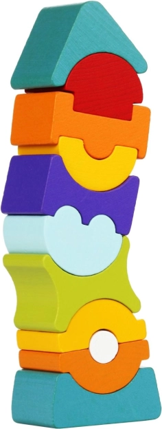 Otkrijte zabavnu i edukativnu igračku za male graditelje: balansirajući toranj od kvalitetnog javora i bukve s 11 šarenih dijelova koji se pametno uklapaju. Zahvaljujući zaobljenim oblicima toranj se može slagati ravno ili naginjati u stranu, čime se treniraju fina motorika, logičko razmišljanje i strpljenje. Proizvedeno u Europi od ekološki uzgojenog drva i obojano sigurnim vodenim bojama.