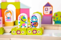 Drvena konstrukcijska igračka Bajkoviti grad idealan je izbor za djecu koja vole stvarati i maštati. Set sadrži 55 kocaka s kojima je moguće graditi kuće, mostove, dvorce i tornjeve. Igra s kockama razvija senzomotoričke sposobnosti, logičko razmišljanje i kreativnost.