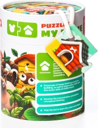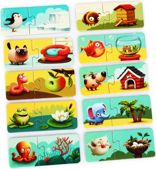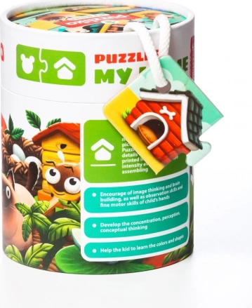Zabavan set Puzzlika Moj dom uči djecu povezivati životinje s njihovim domovima. Sadrži 20 velikih čvrstih dijelova koji čine 10 parova. Podržava logičko razmišljanje, razvoj fine motorike, prepoznavanje životinja i okoliša te vizualnu percepciju. Izrađeno od izdržljivog višeslojnog kartona s sjajnom površinom, lako se čisti i idealno je za predškolce.