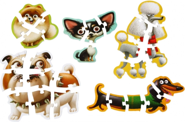 Otkrijte zabavno učenje s Puzzlika puzzlama – set 5 zasebnih slika psića od ukupno 27 velikih čvrstih dijelova. Idealno za malu djecu koja tijekom slaganja razvijaju logičko razmišljanje, finu motoriku i kreativnost. Proizvedeno u Europi od izdržljivog višeslojnog kartona s sjajnom površinom, lako se čisti i prijateljsko je prema prirodi.