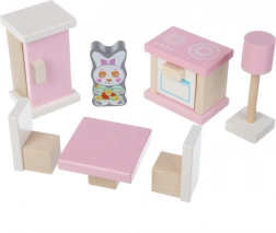 Uđite u svijet mašte s Drvenim namještajem za lutke Kuhinjica, prekrasnim setom od 10 dijelova koji vodi djecu u svijet beskrajne kreativnosti. Set uključuje: