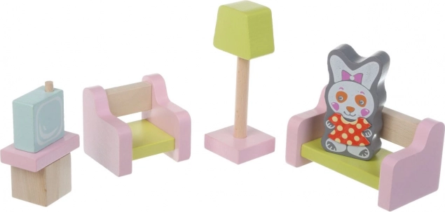 Drveni set namještaja za lutke brenda Cubika idealni je dodatak dječjoj sobi. Potaknite dječju kreativnost i maštu ovim setom od 9 dijelova koji uključuje: