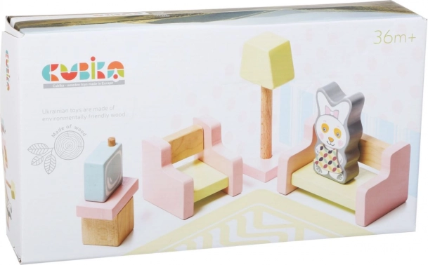 Otkrijte čaroliju igračaka Cubika s dnevnim boravkom za lutke, izrađenim od ekološki uzgojenog drva s preciznom obradom i modernim dizajnom. Set sadrži 9 dijelova, uključujući drveni kauč, naslonjač i magnetske dodatke.
