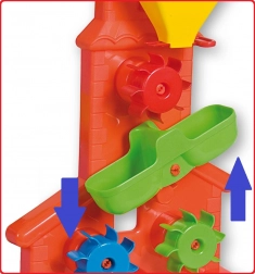 Ovaj izdržljivi mlin odličan je pratitelj na pješčaniku i uz vodu. Djeca mogu u široki lijevak s regulacijom sipati pijesak ili ulijevati vodu i promatrati kako tri šarena kotača oživljavaju i vrte se. Razdjelni žlijeb pomaže usmjeriti protok i potiče eksperimentiranje.