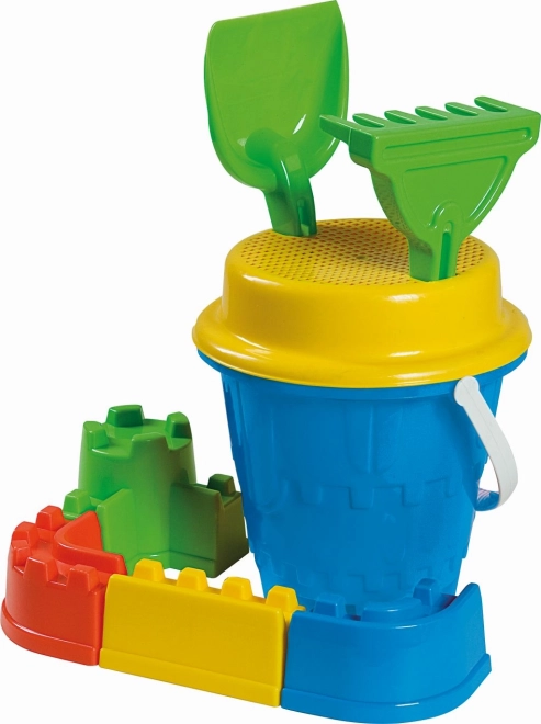 - Kantica u obliku dvorca, sito, lopatica, grabljice, 4 kalupa za bedeme