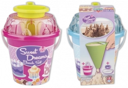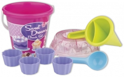 Ovaj srednje veliki Androni set za pijesak donosi sve potrebno za kreativnu igru u pješčaniku i uz vodu. Dekoraterski lijevak omogućuje djeci kombiniranje pijeska i vode te izradu originalnih “muffina” i drugih kreacija, dok kalupi u obliku bábovke i prozirno sito u obliku torte potiču maštu i finu motoriku.