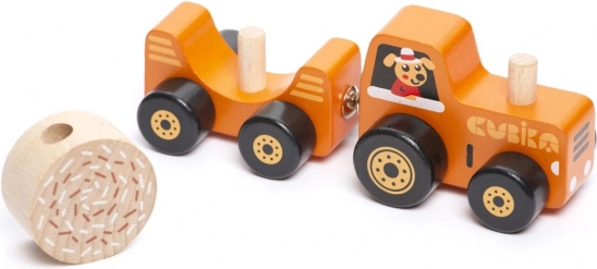 Otkrijte praktičnu i sigurnu igračku za najmlađe – drveni traktor s prikolicom koji se zahvaljujući magnetskom spajanju lako sastavlja i rastavlja. Dio seta je i odvojivi balež sijena, koji donosi više mogućnosti za igru i potiče maštu.