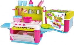 Ova pultna kuhinjica idealna je za putovanja i male dječje sobe. Zahvaljujući dvjema bočnim, nosivim i uklonjivim plohama nudi više prostora za igru, a ujedno se lako prenosi. Sastavni dio su pećnica s limom, ploča za kuhanje, sudoper s pipom i bogat set posuđa – sve za realističnu igru kuhanja.