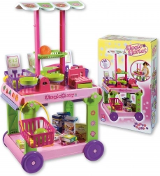 Dječja pokretna tržnica ANDRONI donosi djeci realistčnu zabavu trgovanja s bogatom opremom. U kompletu je pokretna kolica s odvojivom nadstrešnicom, blagajna, vaga, košarice i mnoštvo prehrambenih dodataka. Proizvedeno u Italiji od kvalitetnih, čvrstih i elastičnih plastika koje podnose i zahtjevniju dječju igru. Idealno za razvoj socijalne igre, mašte i fine motorike. 30 dodataka, stabilna konstrukcija, lako premještanje i visina 85 cm za ugodnu igru.