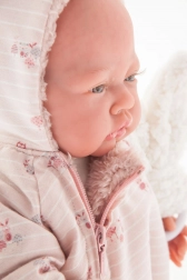 Pažljivo oslikane vlasi, žilice, nokti i obrve stvaraju autentičan izgled novorođenčeta. Posebna obrada kože djeluje prirodno i nježno na dodir.