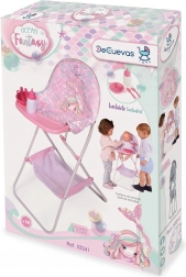 U kompletu je poslužavni stolić s ljupkim dodacima (bočica, pribor) i praktična donja košarica za odlaganje. Dimenzije 65 × 32 × 42 cm (v × š × d) i visina do stolića 50 cm osiguravaju udobno korištenje za djecu. Kvalitetna izrada brenda DeCuevas oduševit će dugotrajnošću i sigurnim izvedenjem.