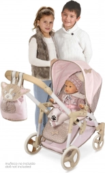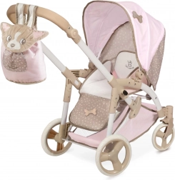 Stilska dječja kolica za lutke 3 u 1 iz nježne kolekcije s motivom šteneta DIDI oduševit će svaku malu mamu. Nude podesivi ležaj i sportsko sjedalo, prijenosnu torbu s preslatkim vezenim ukrasom, visinski podesivu ručku do 80 cm i okretne prednje kotače za lako upravljanje. Praktična velika košara, trodijelni pojas i kvalitetna španjolska izrada od metala, plastike i tekstila jamče sigurnu i zabavnu igru.