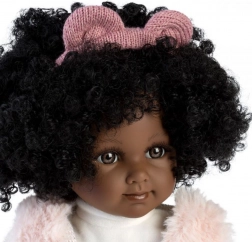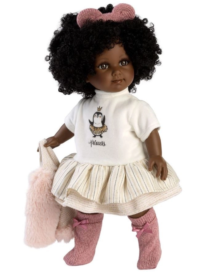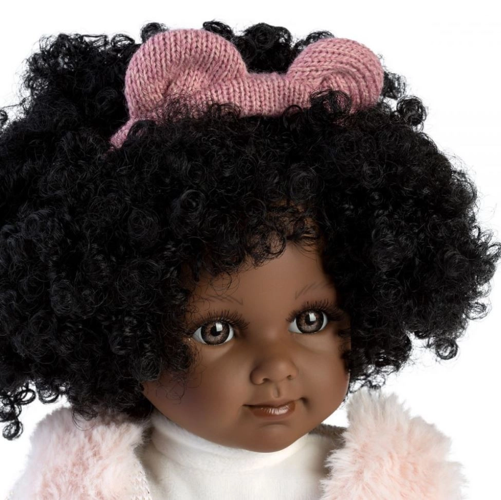 Otkrijte čarobnu lutku Llorens Zuri 35 cm – elegantnije tamnije puti, s bogatom kovrčavom kosom i ružičastom mašnom te stilskim outfitom od mekih tkanina. Ruke, noge i glava od finog vinila, mekano tekstilno tijelo za ugodno maženje. Ručna izrada u Španjolskoj i sigurnost prema EU normama jamče kvalitetnu i sigurnu igru.