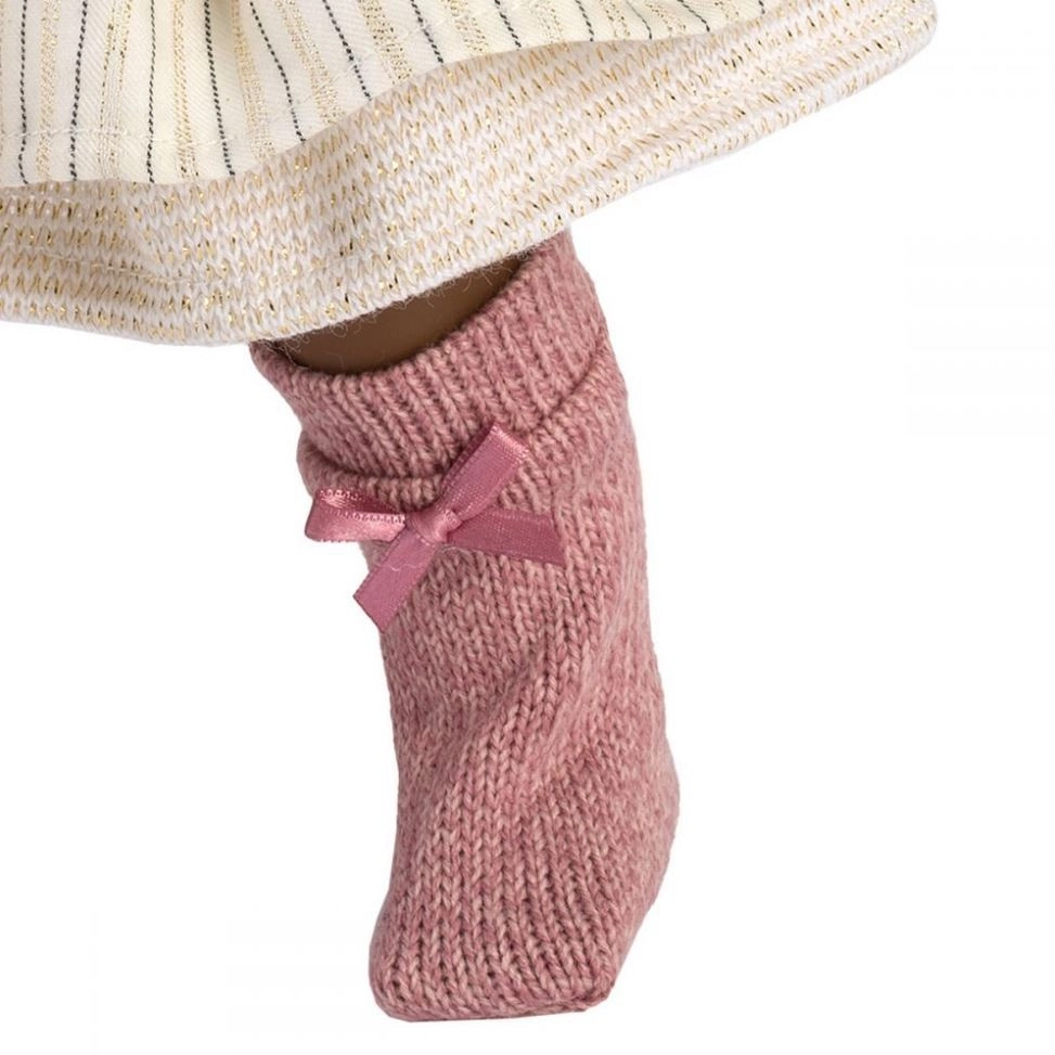 Kombinirana haljinica, “pahuljasti” džemperić i čarape s mašnicama od ugodnih tkanina osiguravaju udobnu igru i stajliš izgled.