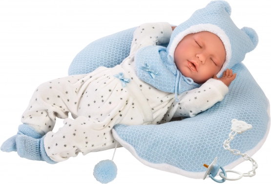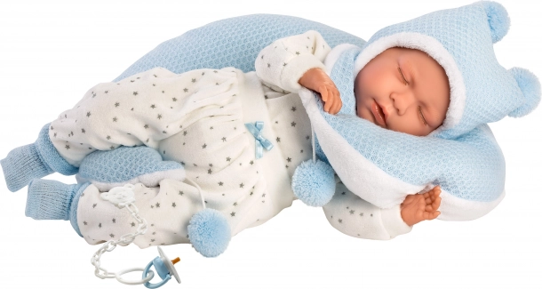 Priuštite svojoj lutki stil i udobnost s ovim 5‑dijelnim kompletom za lutke NEW BORN LLORENS 40–42 cm. Uključuje mekani jastuk za dojenje, skladno plavo‑bijelo izdanje i poklon‑pakiranje. Proizvedeno u Španjolskoj, prikladno od 3 godine.