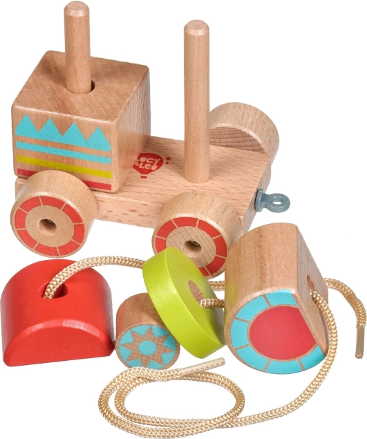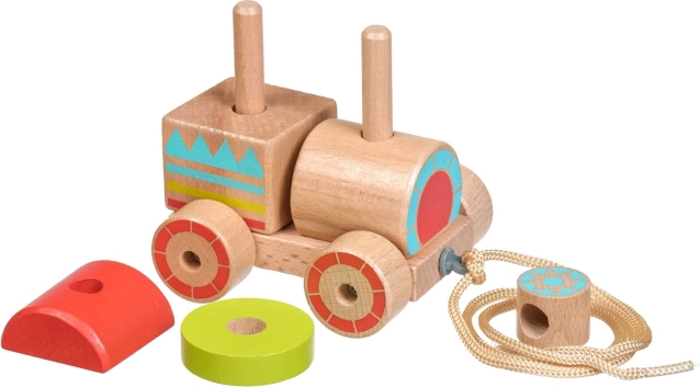 Drvena vučna lokomotiva spaja klasičan izgled i moderne obrazovne elemente. Djeca slažu šarene dijelove na prava mjesta, vježbaju hvat i otkrivaju osnovne oblike i boje. Nakon slaganja lokomotivu mogu jednostavno vući pomoću konopca i tako razvijati koordinaciju hoda.