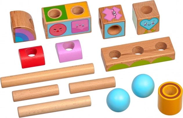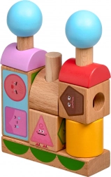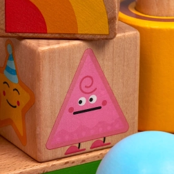 Zahvaljujući drvenoj osnovi s klinovima djeca lako smještaju oblike prema predlošcima te razvijaju finu motoriku i koordinaciju ruka–oko.