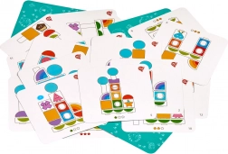 Set sadrži 24 kartice različite težine. Djeca vježbaju preciznost, planiranje koraka te vizualno razlikovanje oblika i boja.